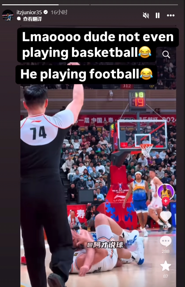 洛夫頓更新INS吐槽了CBA的犯規(guī),隨后再次點名艾孜麥提,寫道:“笑死我了,這哥們就不是來打籃球的????,來打橄欖球的吧。????”