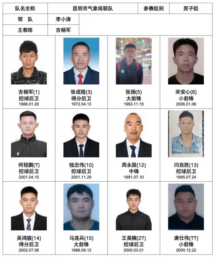 昆明市氣象局聯(lián)隊(duì)成立于2004年,主要由昆明市氣象局聯(lián)合各大企事業(yè)單位籃球愛(ài)好者組成。球隊(duì)注重團(tuán)隊(duì)合作和個(gè)人技術(shù)的提高,定期組織訓(xùn)練,始終秉承“快樂(lè)籃球、青春永駐”的宗旨進(jìn)行鍛煉及比賽。球隊(duì)敢于挑戰(zhàn)、勇于創(chuàng)新,無(wú)論面對(duì)何種困難,都能夠緊密協(xié)作、克服困難、奮力拼搏?,技術(shù)風(fēng)格上靈活多變。通過(guò)積極的參加訓(xùn)練和比賽,享受籃球帶來(lái)的快樂(lè)。