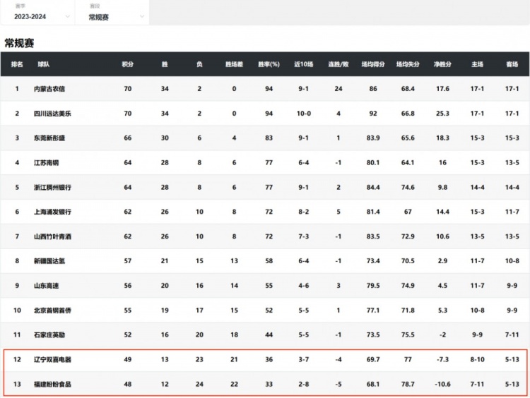 而且,在AB分組時(shí),分組也沒(méi)有完全按照原來(lái)的排名對(duì)半分,而是搞出了12-9這樣的分組,于是上賽季排名第13的福建,就在準(zhǔn)備不足的情況下直接壓線(xiàn)鎖定了季后賽。