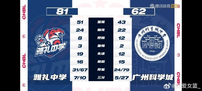 數(shù)據(jù)方面:雅禮中學(xué)胡瑞燕22分8籃板7助攻表現(xiàn)全面,劉瑞16分5籃板,臧欣妍14分10籃板獲得兩雙,徐紫奇14分7籃板。廣州科學(xué)城艾楚姬空砍23分5籃板,陳木蘭12分,李泳霖11分6籃板5助攻。曾鑫雅10分。