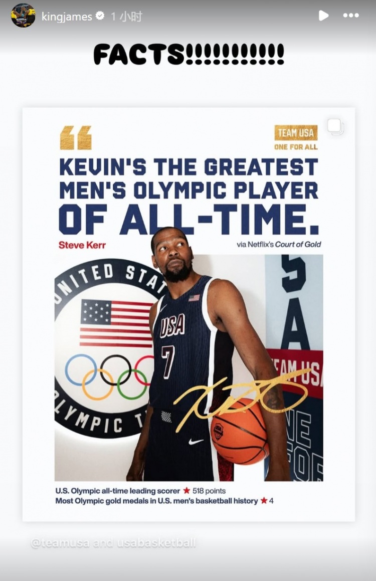 2月23日訊 近日,勇士主帥科爾在接受采訪時表示,杜蘭特是奧運(yùn)會有史以來最偉大的男子運(yùn)動員。