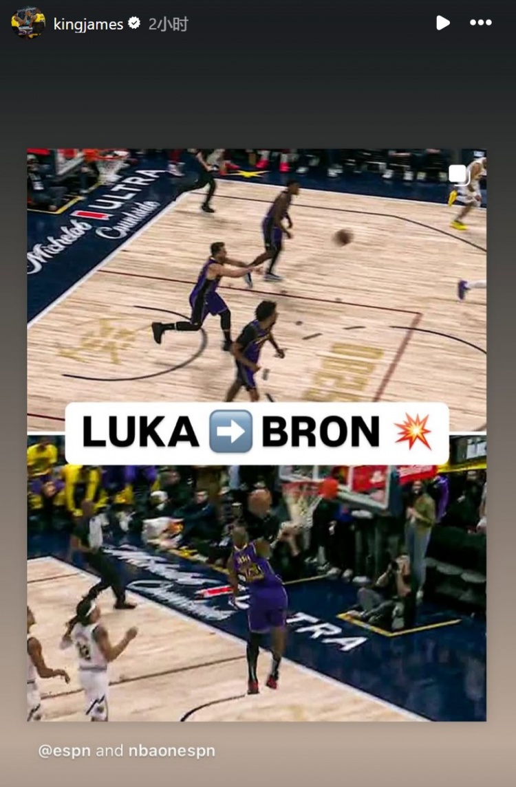 賽后,詹姆斯在INS轉(zhuǎn)發(fā)了東契奇本場(chǎng)數(shù)據(jù),還有他們兩人的一次超遠(yuǎn)距離連線。