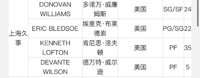 其中,上海男籃新援多諾萬-威廉姆斯完成注冊(cè)。