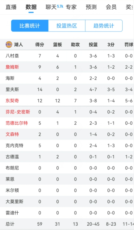 獨(dú)行俠上半場52中18&命中率僅34.6% 湖人命中率44.4%