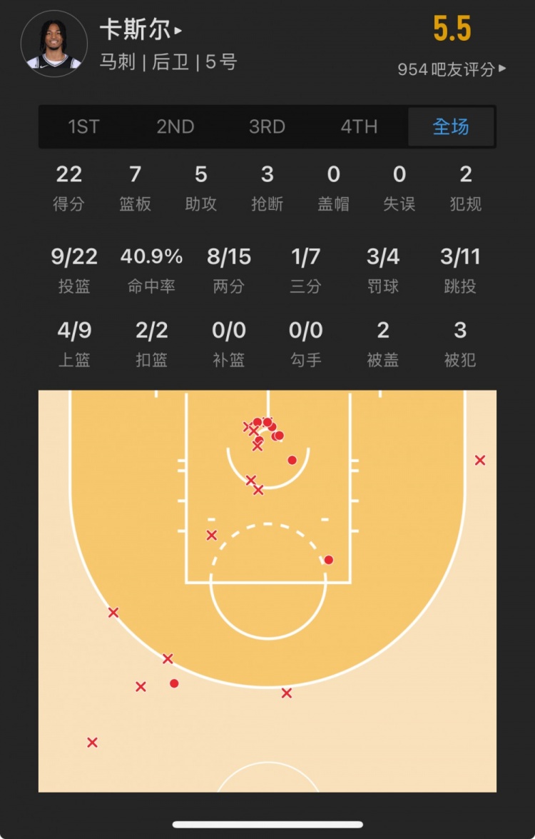 馬刺4號秀 斯蒂芬-卡斯爾 登場29.9分鐘