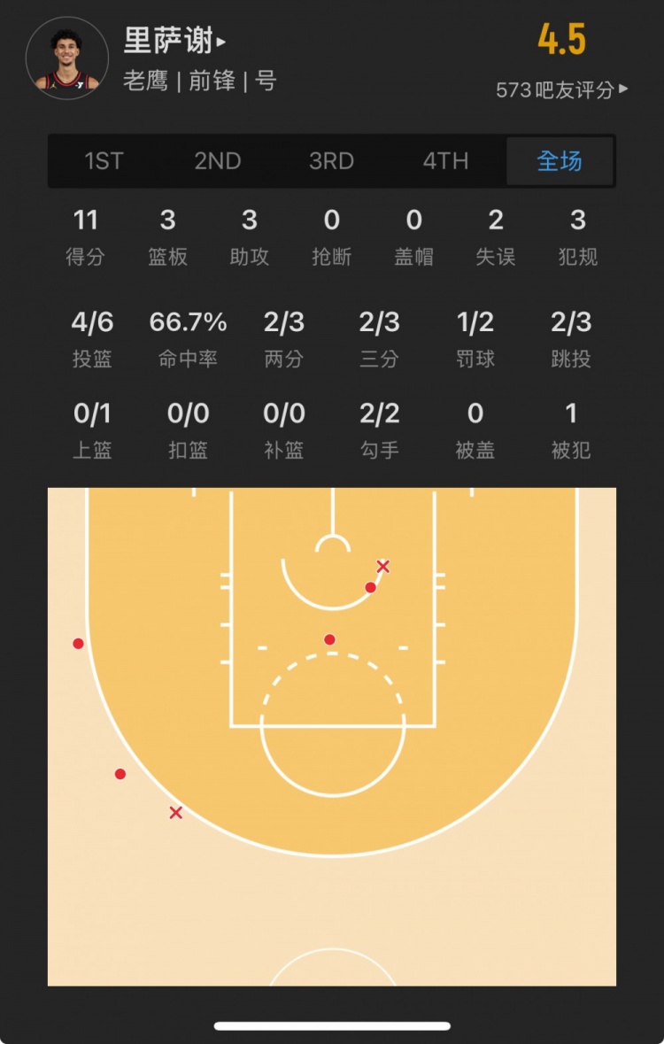 老鷹狀元秀 扎卡里-里薩謝 登場25.6分鐘