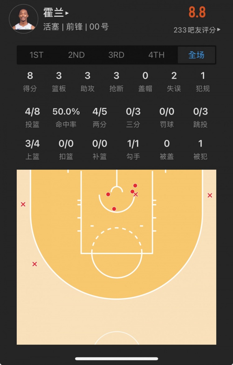活塞5號秀 羅恩-霍蘭二世 登場19.0分鐘