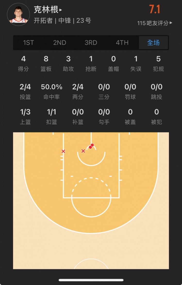 開拓者7號秀 多諾萬-克林根 登場17.5分鐘