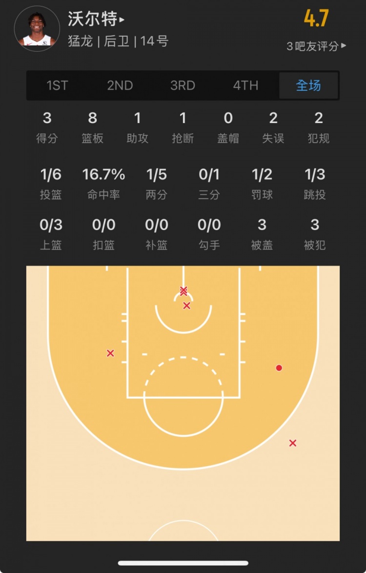 猛龍19號秀 賈科比-沃爾特 登場23.4分鐘