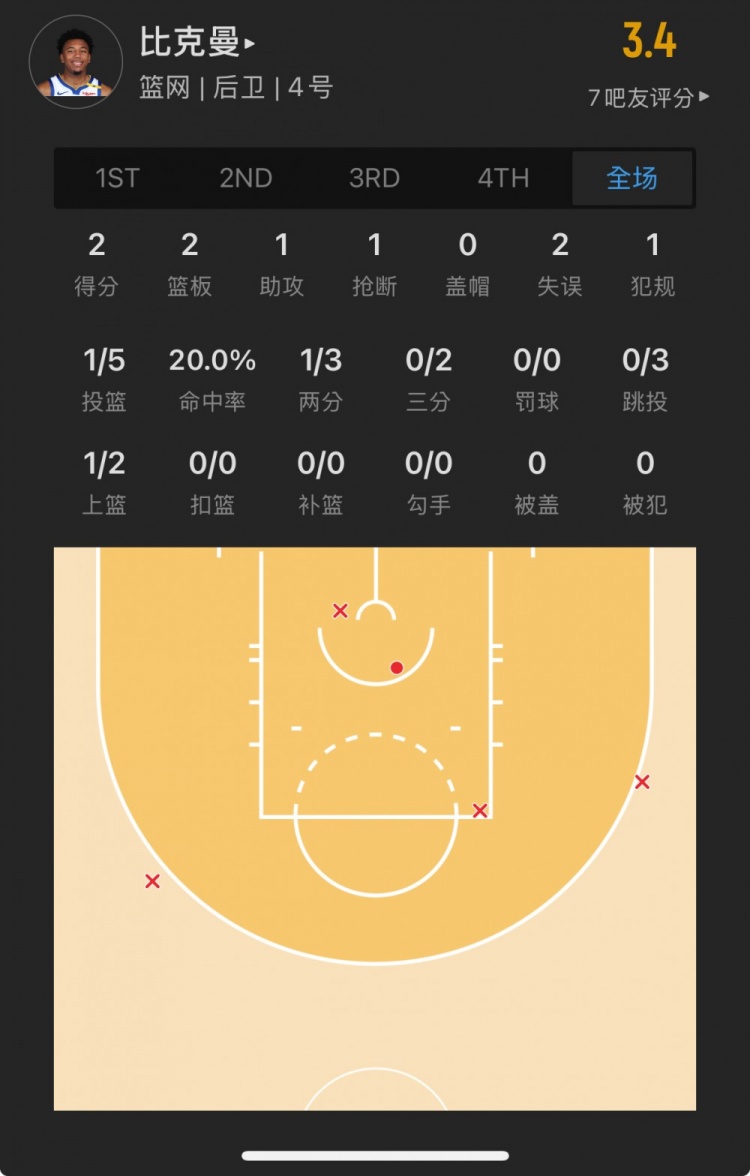 籃網(wǎng)落選秀 里斯-比克曼 登場14.1分鐘