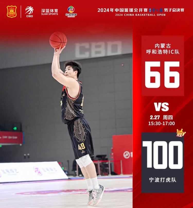 上半場,寧波打虎一開場就展現(xiàn)了超強(qiáng)的得分能力,以16-5領(lǐng)先。內(nèi)蒙古IC通過外線連續(xù)三分,不斷追分。但在快攻的情況下,內(nèi)蒙古IC失誤增多,且命中率下降。半場結(jié)束,寧波打虎50-26領(lǐng)先內(nèi)蒙古IC。下半場,兩隊之間的實力差距愈發(fā)明顯,寧波打虎最終以100-66戰(zhàn)勝內(nèi)蒙古IC。