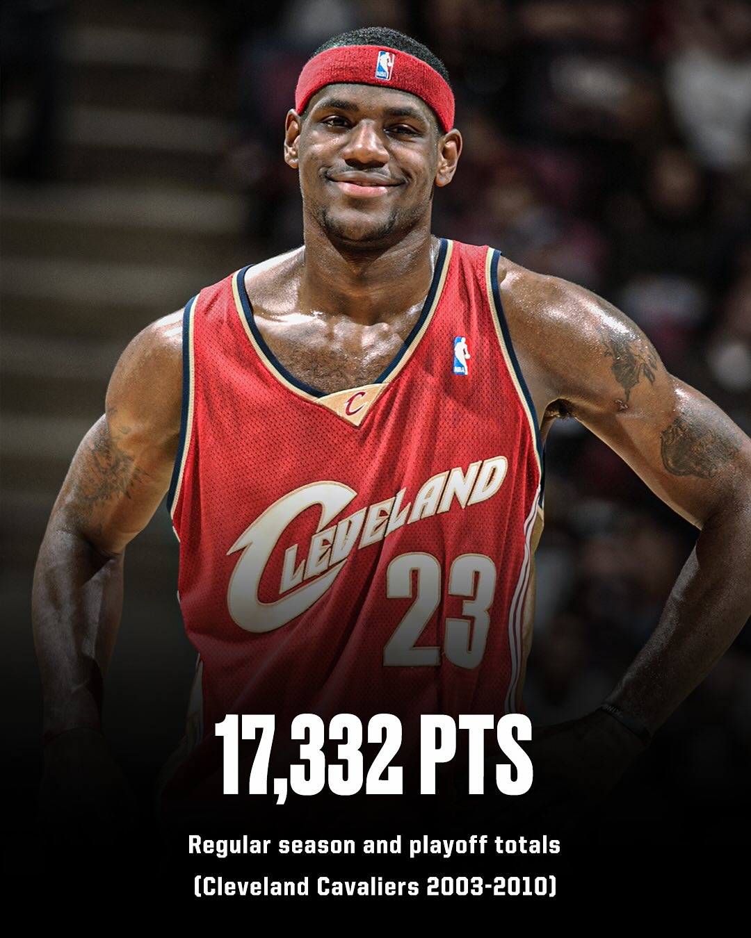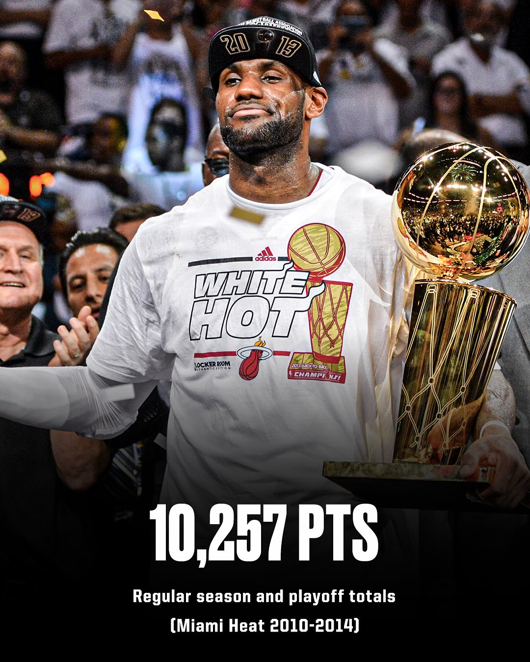 49999已斷檔領先!詹姆斯職業(yè)生涯四隊總得分分布 熱火時期最少