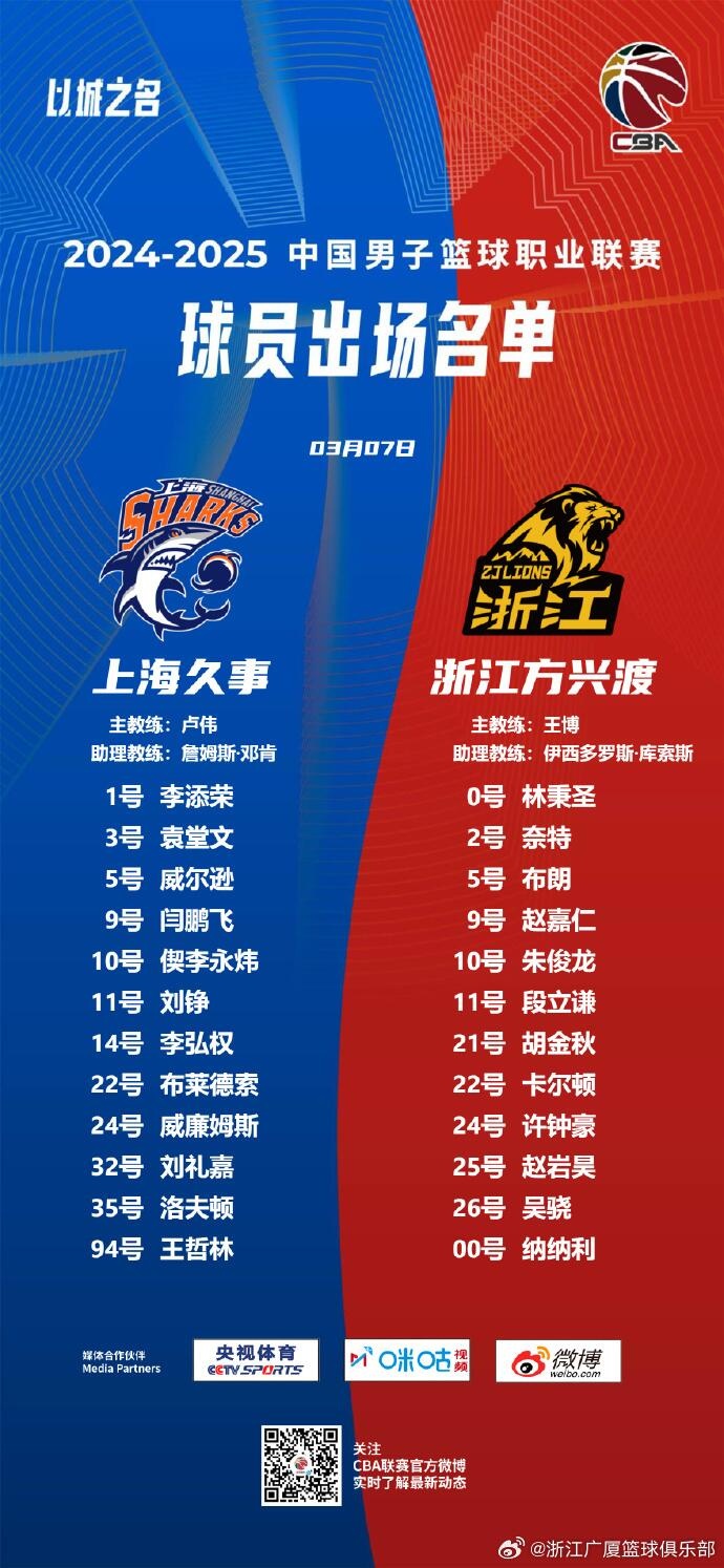 3月7日訊 今晚7點35分,上海男籃將在主場迎戰(zhàn)廣廈男籃。