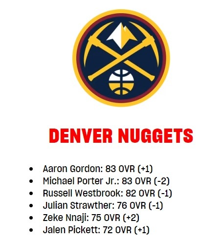 3月7日訊 NBA 2K官網(wǎng)更新了掘金球員的能力值情況,阿隆-戈登上雙、威少、小邁克爾-波特下降,具體如下: