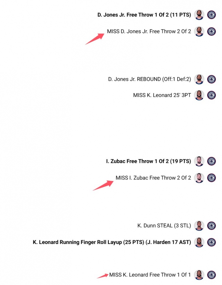 決勝時(shí)刻!祖巴茨、瓊斯、小卡90秒內(nèi)丟3罰球 全場(chǎng)快船才丟4個(gè)