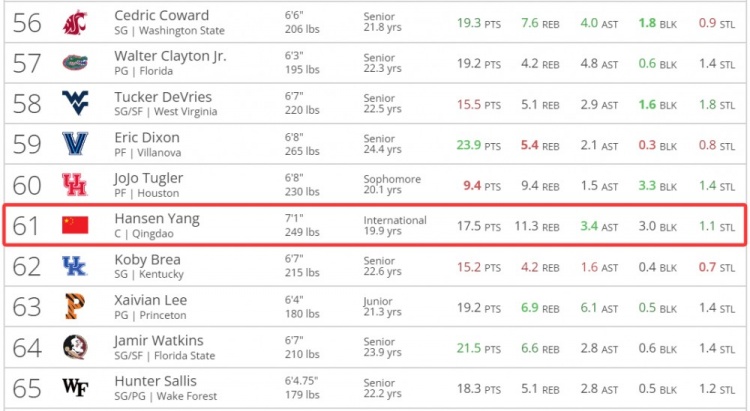 知名選秀網站最新2025年選秀大板:楊瀚森上升一位來到第68