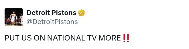 賽后,活塞官方喊話道:“多給我們排全美。”