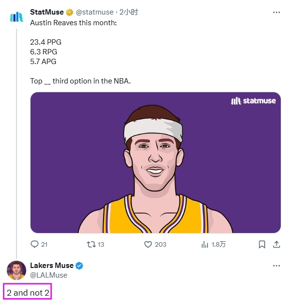 StatMuse曬出湖人后衛(wèi)奧斯汀-里夫斯本月至今的數(shù)據(jù):
