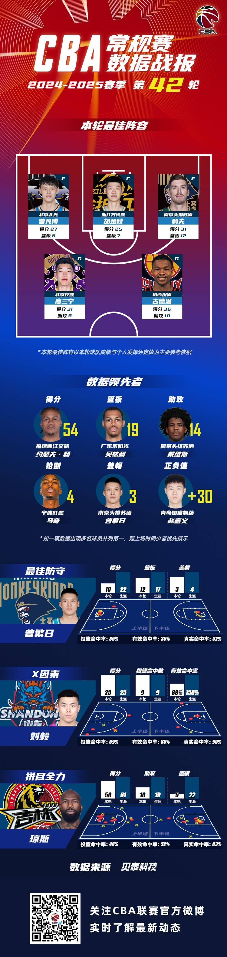 第42輪X因素球員由來(lái)自山東高速籃球俱樂(lè)部的劉毅獲得;