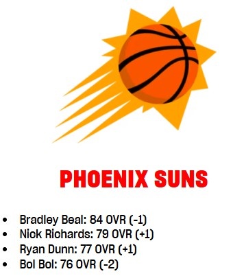 3月21日訊 今天,NBA 2K更新了球員的能力值,太陽(yáng)隊(duì)的變化情況如下: