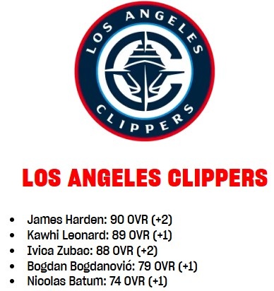 快船球員2K能力值更新:共5人上調 哈登+2重返90 祖巴茨+2至88