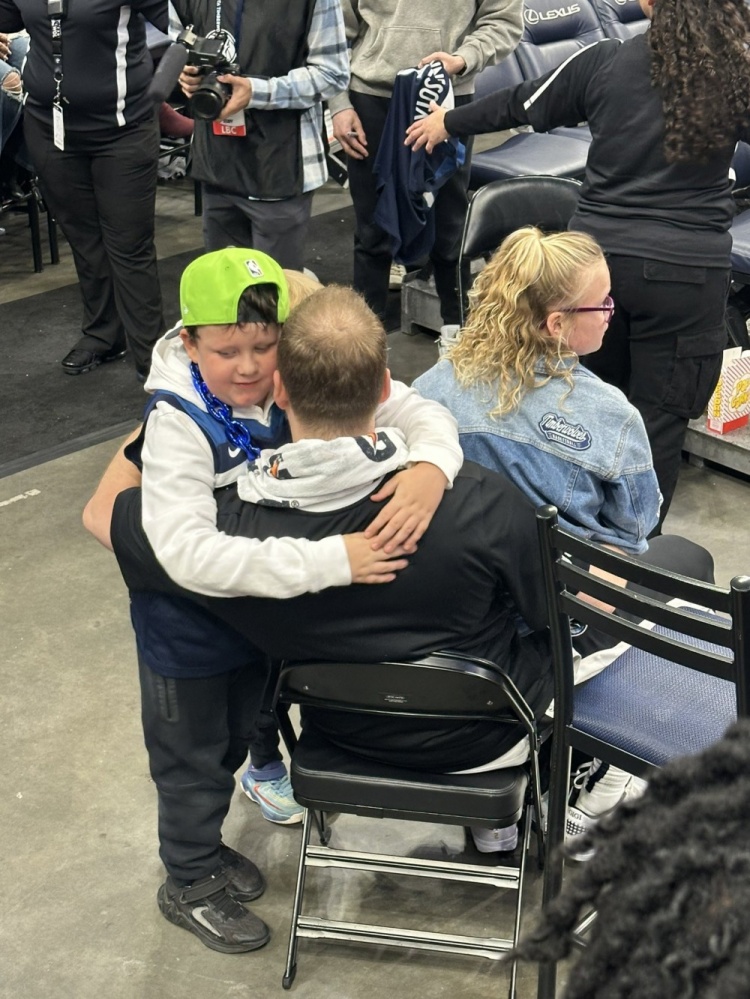 本場比賽,森林狼老將喬·英格爾斯12歲的自閉癥兒子雅各布,在家人的陪同下來到了現(xiàn)場觀看父親的比賽。在家人的支持下喬-英格爾斯今晚首發(fā)出戰(zhàn)六分鐘,盡管英格爾斯未能得分,但這個夜晚的意義遠非技術統(tǒng)計所能體現(xiàn)。