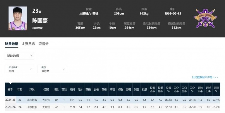 PS:賽季開始前我寫文章我們認(rèn)為謝智杰的風(fēng)格大概是后衛(wèi)線版陳國豪,其實他倆不止風(fēng)格,在球隊里面臨的競爭壓力也很類似,主要對手都是強力外援+國家隊邊緣人