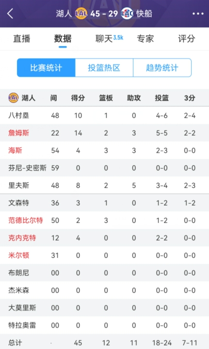 吃餃子了!湖人首節(jié)24中18&三分11中7狂轟45分