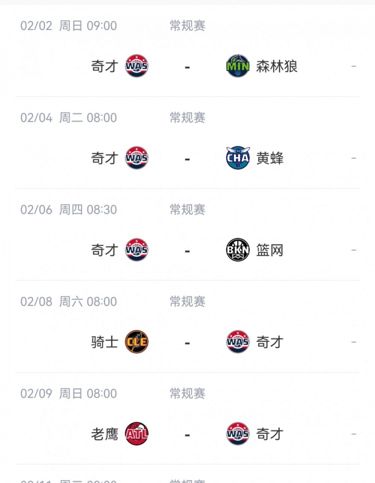 1月31日訊 NBA常規(guī)賽,奇才96-134不敵湖人,遭遇了16連敗。至此,這是奇才本賽季第二次遭遇16連敗。而他們接下來(lái)的對(duì)手如下: 標(biāo)簽: 籃球 NBA 奇才