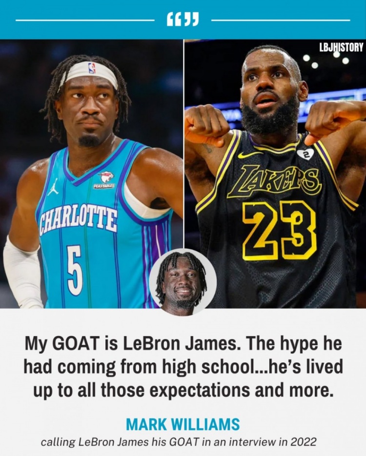 網(wǎng)友挖出了馬克-威廉姆斯2022年稱(chēng)贊詹姆斯的言論,他說(shuō)道:“我的GOAT是勒布朗-詹姆斯,他從高中畢業(yè)后就打出了足夠的聲勢(shì),他已經(jīng)滿足了所有的外界期待,甚至超越了外界期待。還有他的場(chǎng)外成就,建造一所學(xué)校,鼓勵(lì)他的社區(qū),所有的這些事情都讓他成為GOAT?!?/p>