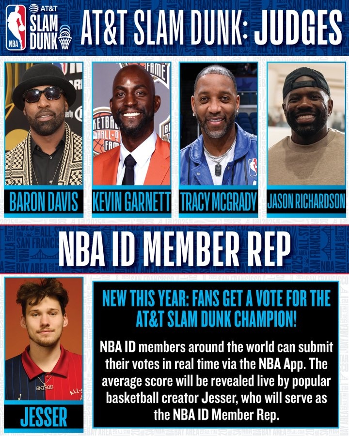 2月8日訊 今日,NBA官方公布了2025舊金山全明星扣籃大賽的評(píng)委團(tuán)。