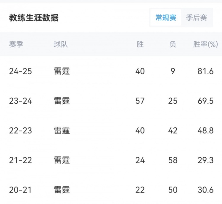 相關新聞>>>頭兩季僅30%勝率!雷霆主帥戴格諾特執(zhí)教勝率來到50%