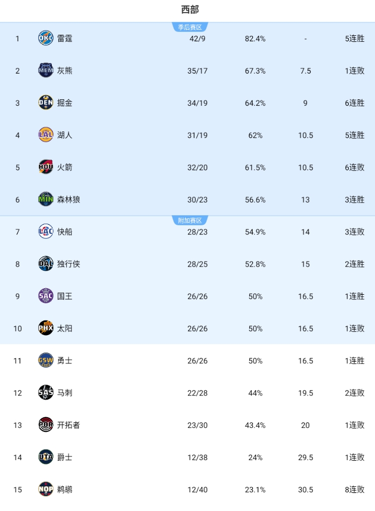 國王戰(zhàn)績來到26勝26負(fù),戰(zhàn)績追平太陽和勇士,憑借排名規(guī)則重回西部第九。太陽輸球跌至第十,勇士被擠出附加賽區(qū)。