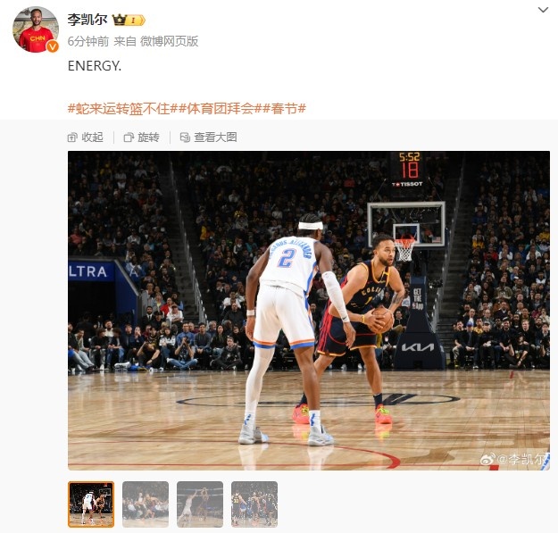 2月1日訊 今天,勇士球員李凱爾更新了個人微博。