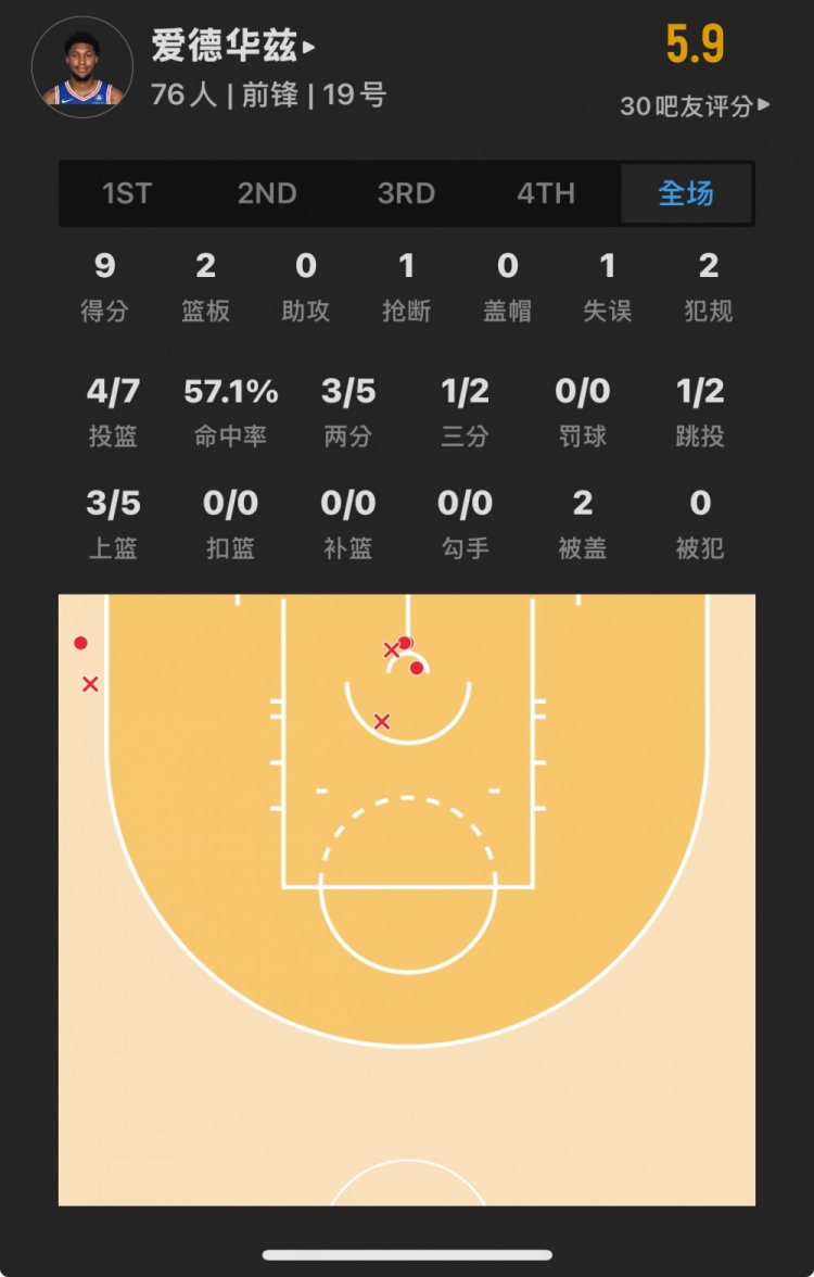 76人落選秀 賈斯汀-愛(ài)德華茲 登場(chǎng)16.2分鐘