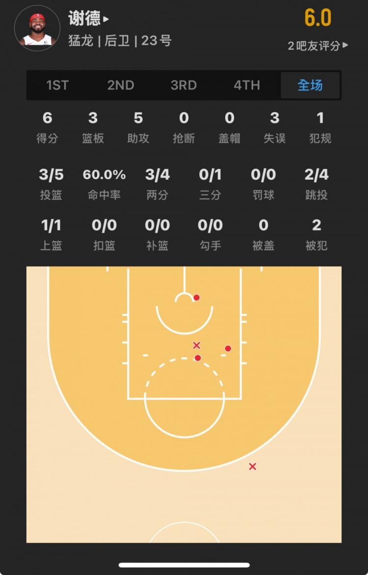 猛龍45號(hào)秀 賈馬爾-謝德 登場(chǎng)17.1分鐘