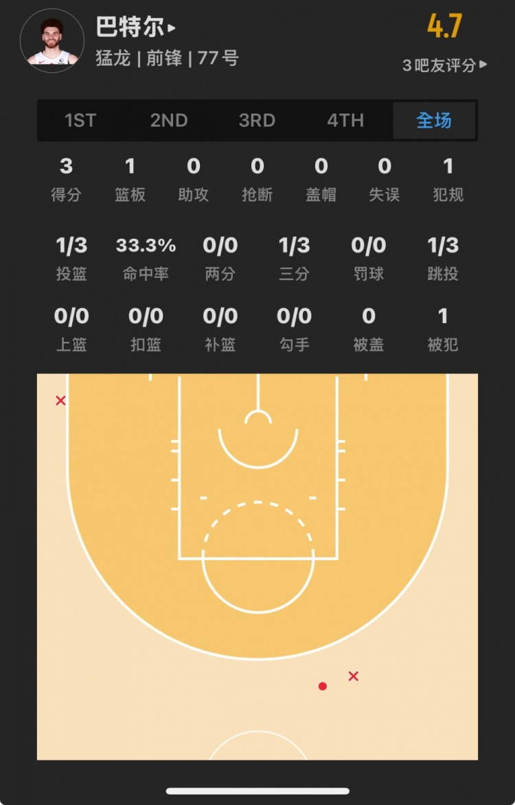 猛龍落選秀 賈米森-巴特爾 登場(chǎng)9.3分鐘