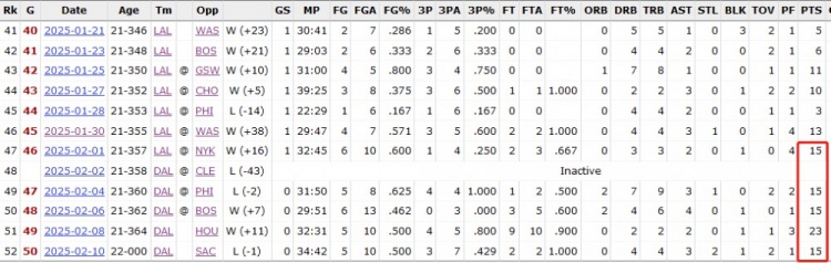 如果算上在湖人的時期,克里斯蒂已經(jīng)連續(xù)6場比賽得分15+(湖人1場,獨行俠5場)。
