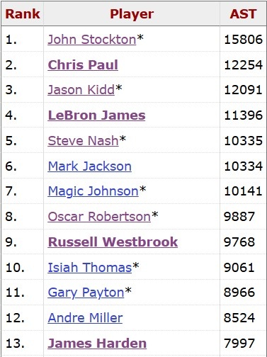 目前,哈登已經(jīng)送出了3次助攻,他的生涯助攻數(shù)突破8000次大關(guān),歷史第13人,現(xiàn)役第4位。