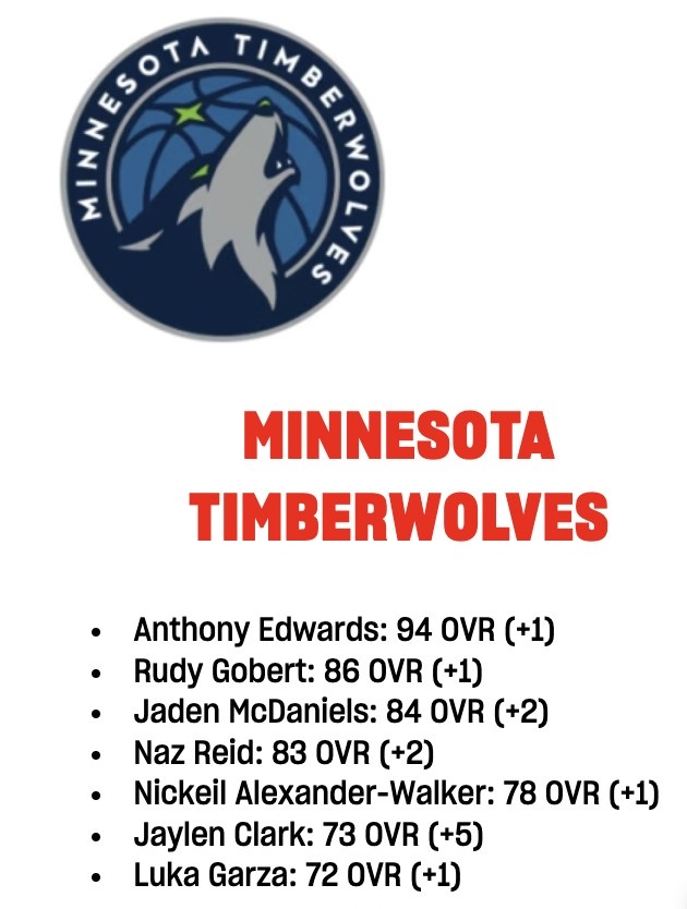 2月14日訊 今日,NBA2K官方更新了能力值調(diào)整,森林狼球員變化情況如下: