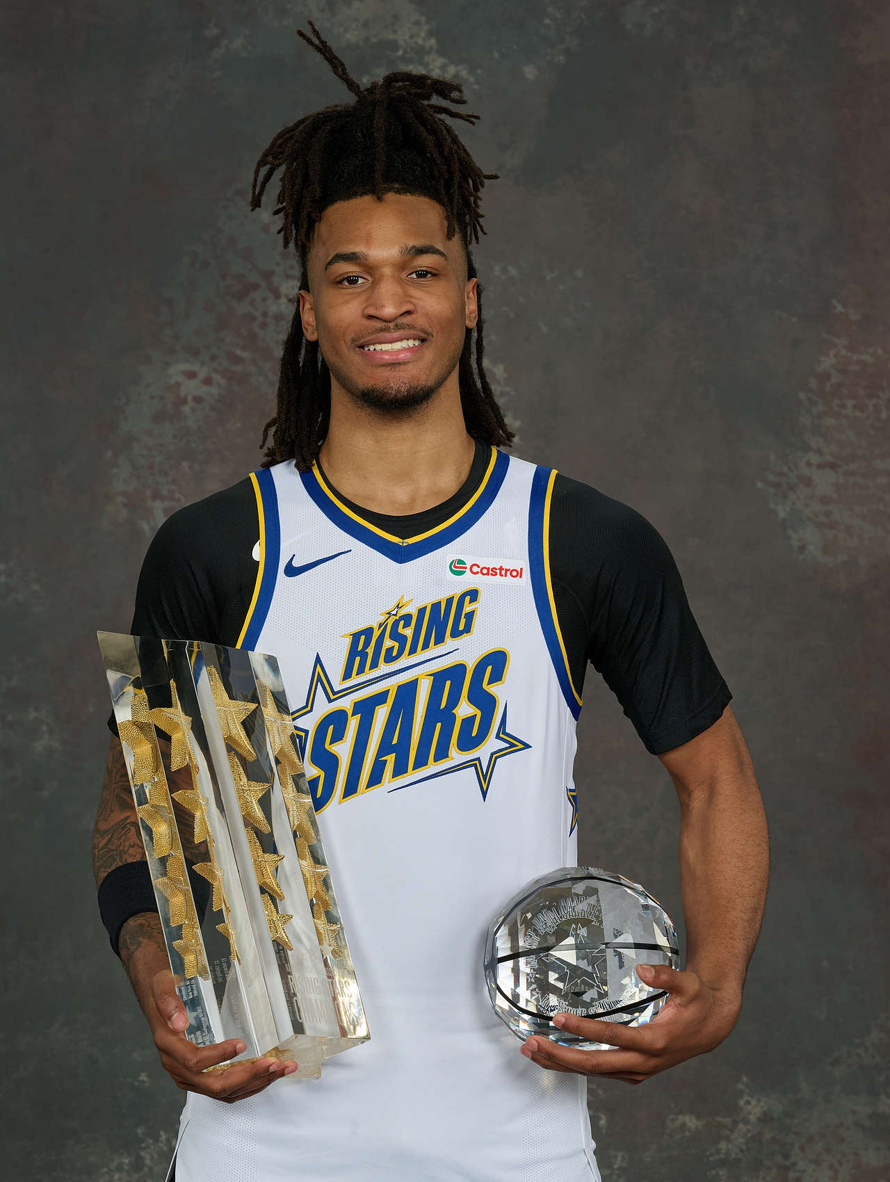 卡斯爾領(lǐng)取新秀賽MVP獎杯