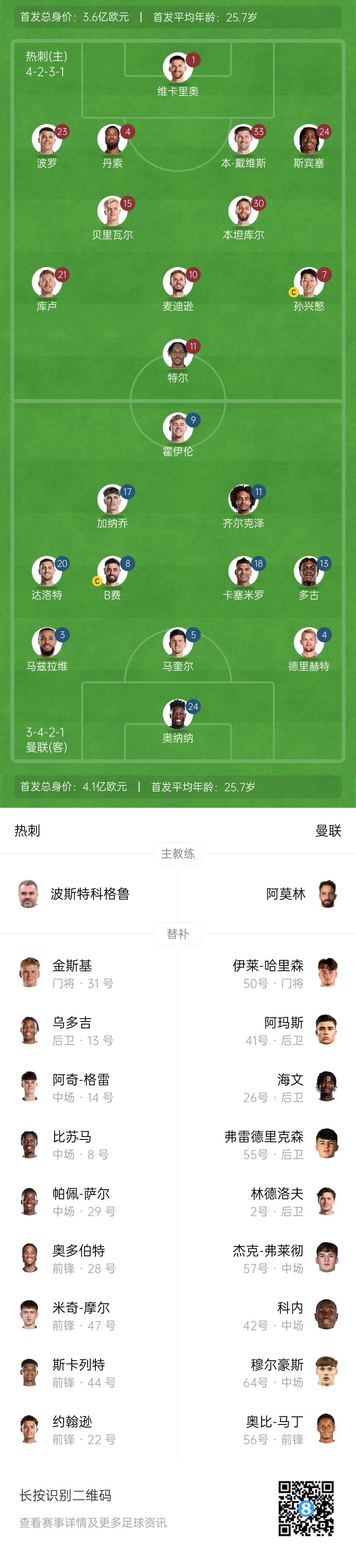 02月16日訊 英超第25輪,熱刺對(duì)陣曼聯(lián),賽前首發(fā)公布。