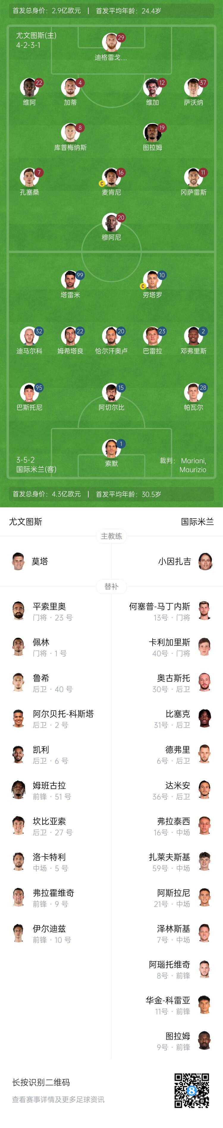 2月17日訊 意甲第25輪,尤文主場對陣國米。賽前,官方公布了本場的首發(fā)名單。