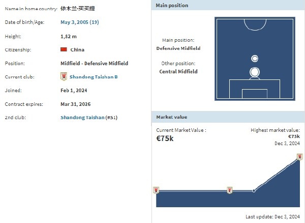 這支國青隊(duì)陣中,另外一名得到廣泛好評的球員是中場的依木蘭。來自于山東泰山青訓(xùn)的他,雖然只有19歲,不過球風(fēng)已經(jīng)非常成熟。