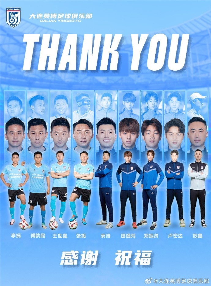 大連英博足球俱樂(lè)部衷心感謝所有球員的辛勤付出和不懈努力!祝愿大家未來(lái)一切順利!