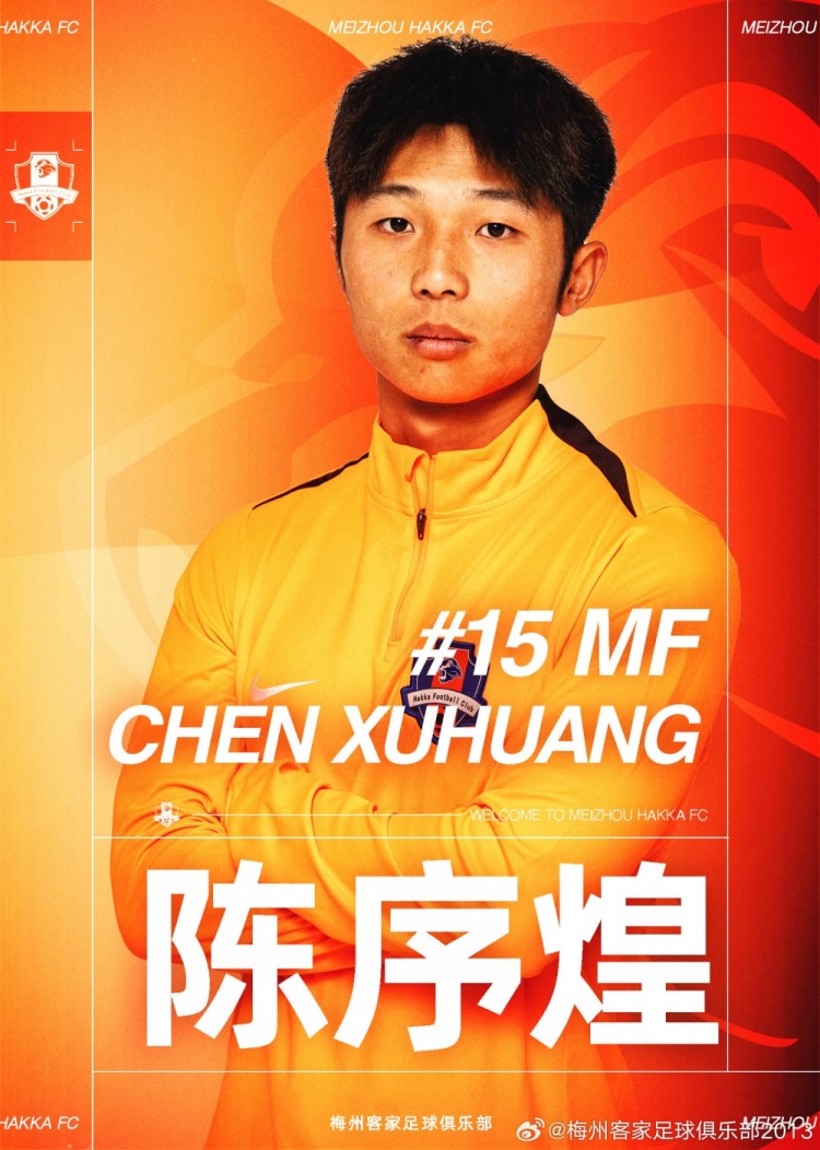 與球員本人友好協(xié)商一致,陳序煌已完成簽約手續(xù),成功加盟梅州客家足球俱樂部,將隨隊征戰(zhàn)2025年中超聯(lián)賽及各項賽事。