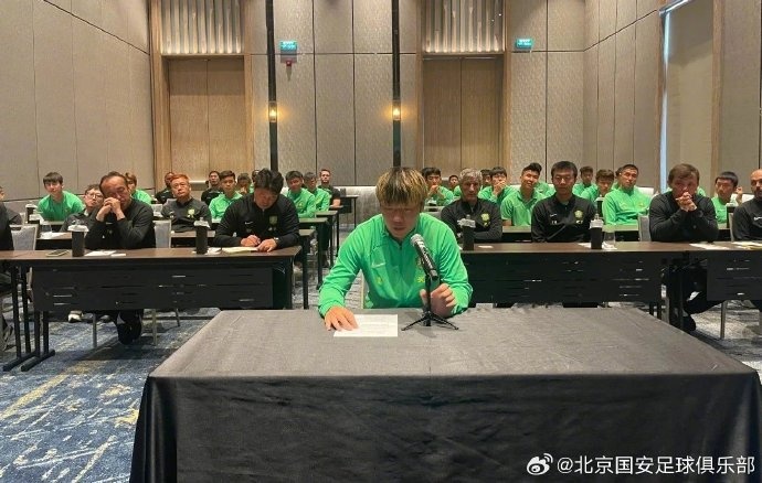 周金輝董事長(zhǎng)的發(fā)言鼓舞了全隊(duì)的士氣,隊(duì)長(zhǎng)張稀哲隨后代表全體隊(duì)員發(fā)言,他說:“新教練組的到來重塑了我們的足球思維,起初或許有磨合的陣痛,但現(xiàn)在,我們清晰感受到——這支團(tuán)隊(duì)的心跳得更快、更齊了。我們也將在主教練的帶領(lǐng)下,同心協(xié)力,一切以團(tuán)隊(duì)為先,集體為先。遵守隊(duì)規(guī),遵守賽風(fēng)賽紀(jì),堅(jiān)守職業(yè)道德。身披綠色戰(zhàn)袍的這些年,工體山呼海嘯的吶喊早已刻進(jìn)骨髓。我們記得球迷在場(chǎng)內(nèi)堅(jiān)毅又期待的目光,記得數(shù)以萬計(jì)的的綠色圍巾,更記得一次次場(chǎng)內(nèi)tifo給予我們的力量。新賽季的倒計(jì)時(shí)已經(jīng)響起!我們會(huì)像捍衛(wèi)家門一樣守護(hù)每一寸球場(chǎng)。沒有保留,沒有退路,唯有將每一分鐘燃燒到極致——為了北京,為球迷,更為了我們的信仰,“國(guó)安永遠(yuǎn)爭(zhēng)第一”!”