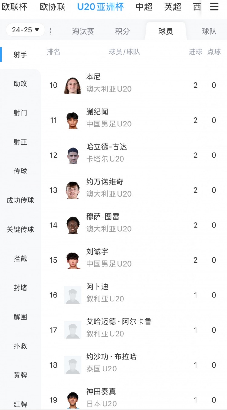 而在射手榜中,國青3將躋身射手榜前10,分別是朱鵬宇、蒯紀(jì)聞和劉誠宇,3人均在本屆賽事打進2球,并列排在射手榜第4位。