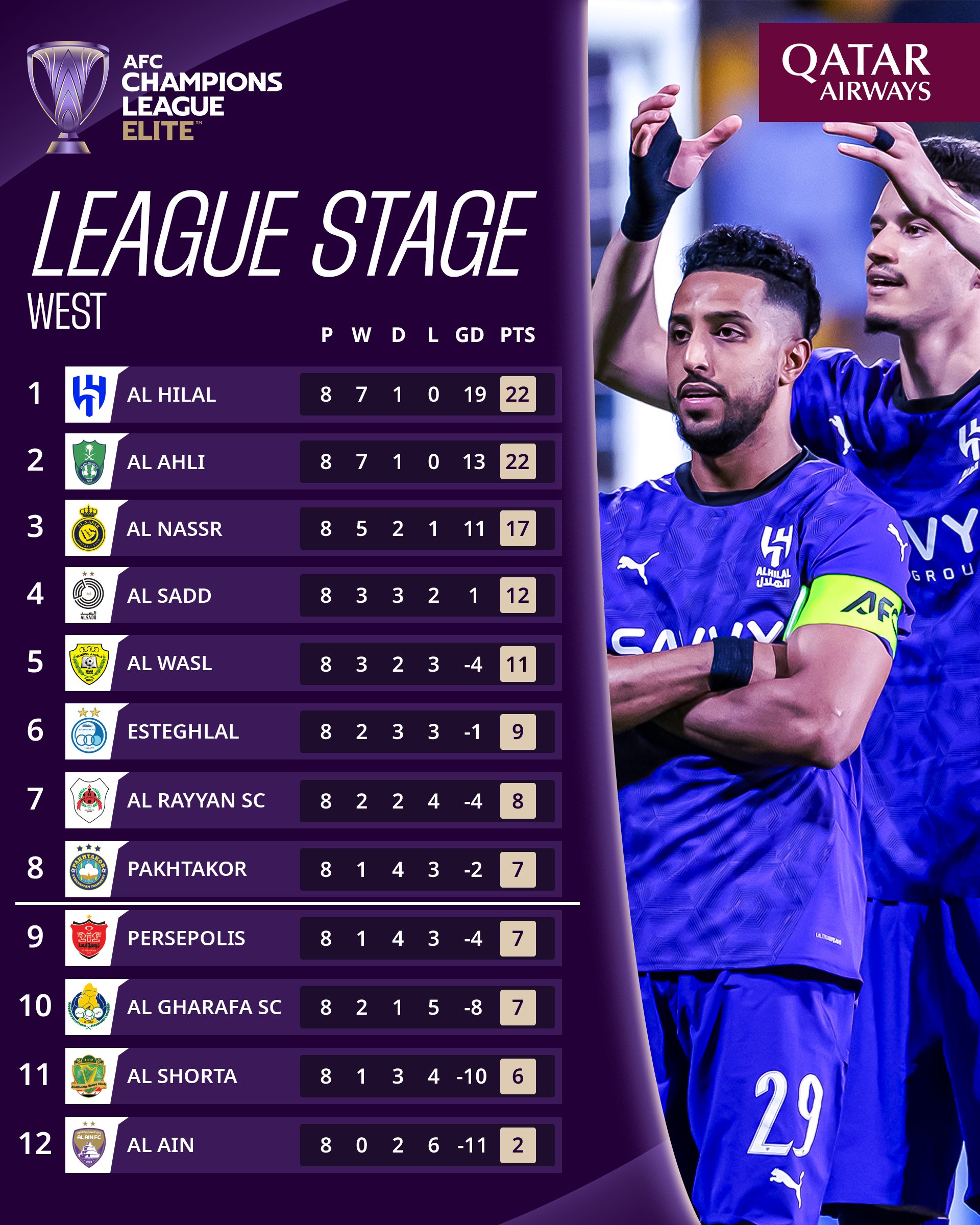 亞冠官推公布積分榜:山東泰山戰(zhàn)績清零,海港申花晉級