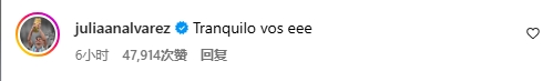 阿爾瓦雷斯也給德保羅評論道:“你冷靜點?!毙∥髅赡嵋渤霈F(xiàn)在評論區(qū),他寫道:“哎喲,不愧是帥哥啊,媽呀呀呀????????”